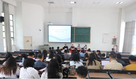 美术与艺术设计学院于4月12日上午召开2024年第二次教职工大会暨本科教育教学审核评估工作推进会,全体教职工参加会议。