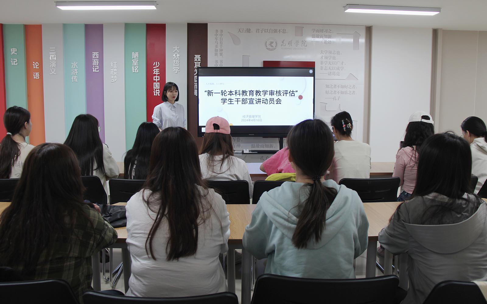 4月10日,经济管理学院紧扣学校的中心工作,在一站式”学生社区召开新一轮本科教育教学审核评估学生干部宣讲动员会,深入学生群体,宣传动员新一轮本科教育教学审核评估工作。经济管理学院团委书记王晗奕主持会议,经济管理学院团学干部30余人参加会议。