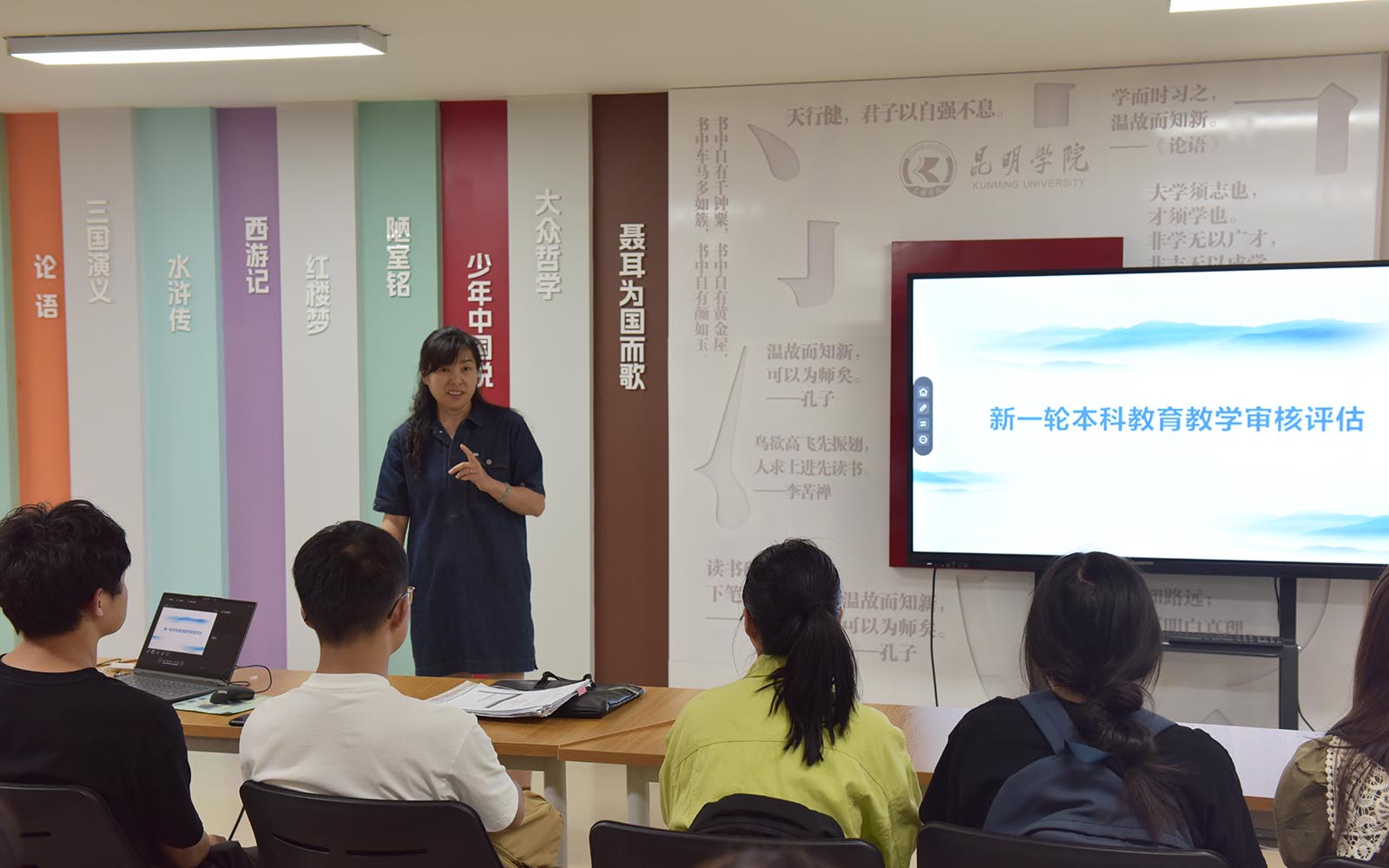 林涛老师就新一轮本科教育教学审核评估工作的内容向同学们做了介绍,强调此次评估工作对学校更名大学具有重要的意义,要求同学们了解昆明学院校训、办学特色等基本情况,积极参与、主动配合完成本轮审核评估工作。林老师还对同学们关心的会计专业职业规划和发展前景进行了互动交流。鼓励同学们认真学习专业知识,积极参与专业实践活动,锻炼自己的沟通能力,学会使用各种数据处理、分析工具,增强就业竞争力。
