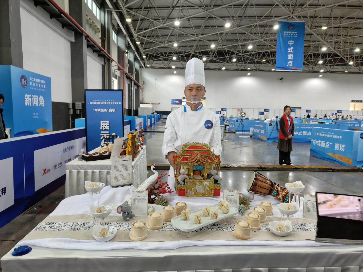近日,昆明学院旅游学院学生马肖,在“第二届全国乡村振兴职业技能大赛”中以总评分排名第二的好成绩,获得中式面点项目(学生组)银奖,为云南参赛代表团争得了荣誉。